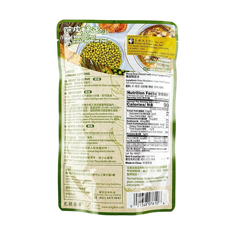 Mung Bean Dessert With Dried Tangerine Peel, 9.1 oz 【Ready To Eat】【Hong Kong-style Dessert】