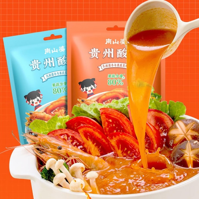 Guizhou Sour Soup Hot Pot Base, Fruit and Vegetable Flavor, 13.12 oz 【For Noodles and Rice Noodles】【No preservatives】