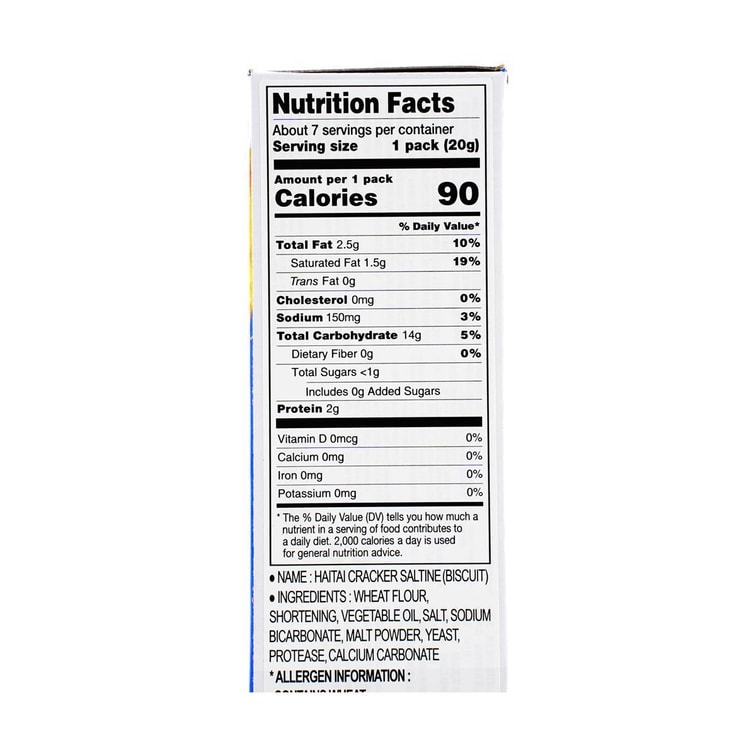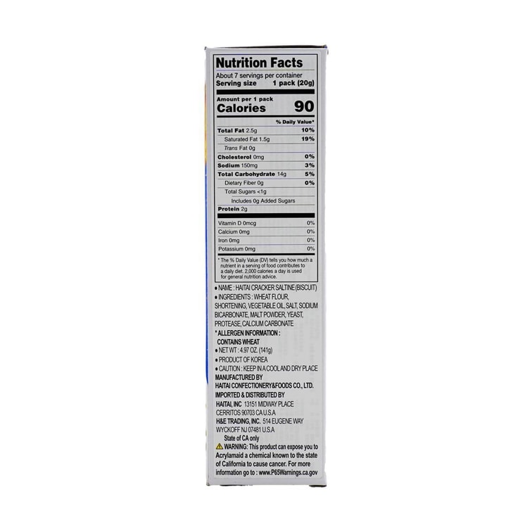 HAITAI Saltine Cracker uses precisely selected wheat flour as the base ingredient. It is crispy and lightly seasoned with salt which makes it irresistible. After having the first piece, you will realize you cannot stop yourself! Great snack to enjoy while working, watching TV, and spending time with friends and family.