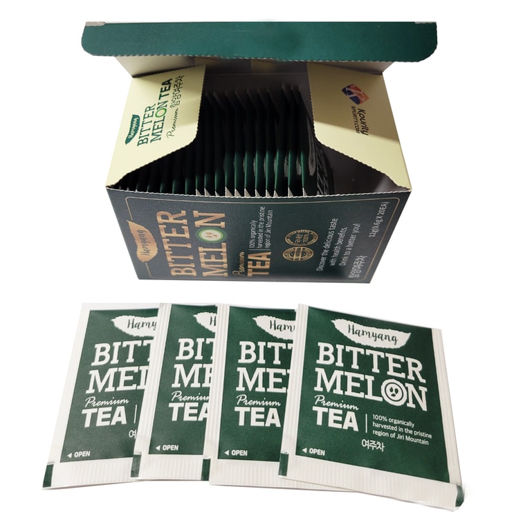 Contains 100% dried bitter melon pieces meticulously packed into the tea bag, a total of 0.6 grams. 20 total tea bags.