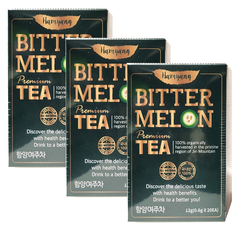 Contains 100% dried bitter melon pieces meticulously packed into the tea bag, a total of 0.6 grams. 20 total tea bags per box. 3 boxes total