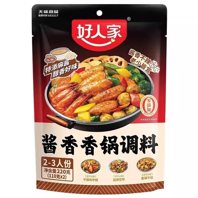 Hao Ren Jia Sauce-Flavored Hot Pot Base, Non-Spicy, Bagged, Dry Pot Seasoning, Authentic Home Cooking Condiment, 220g