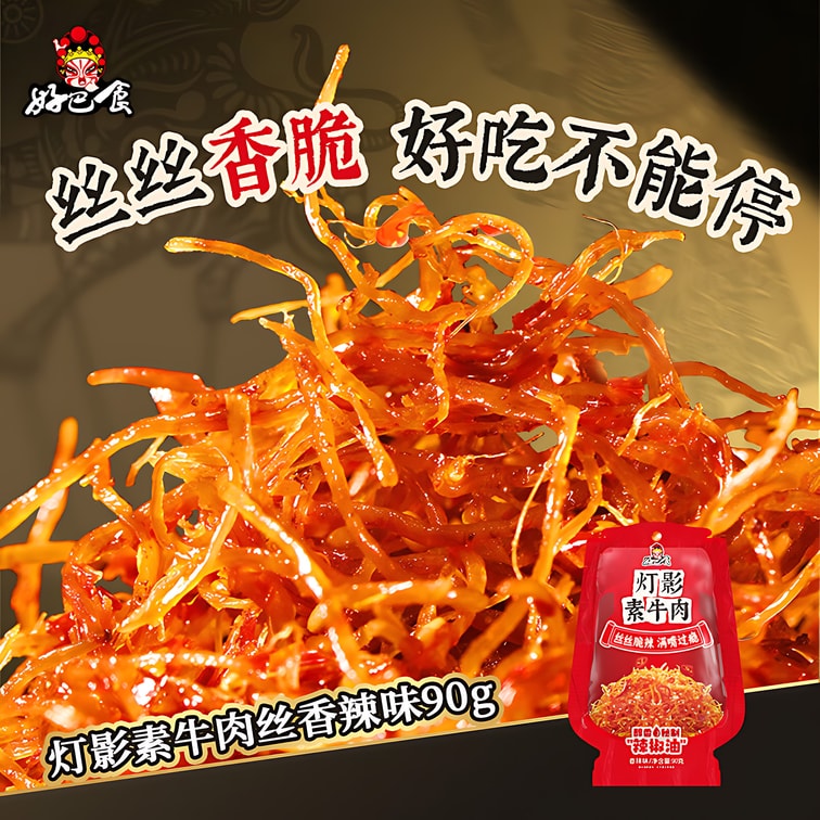 Haobashi Spicy Vegetarian Beef Strips Sichuan Specialty Snack Crispy 90g