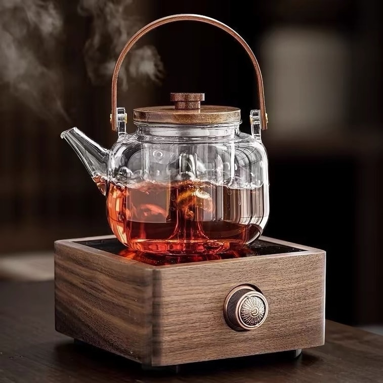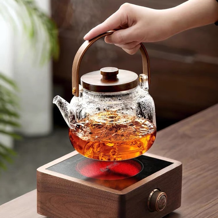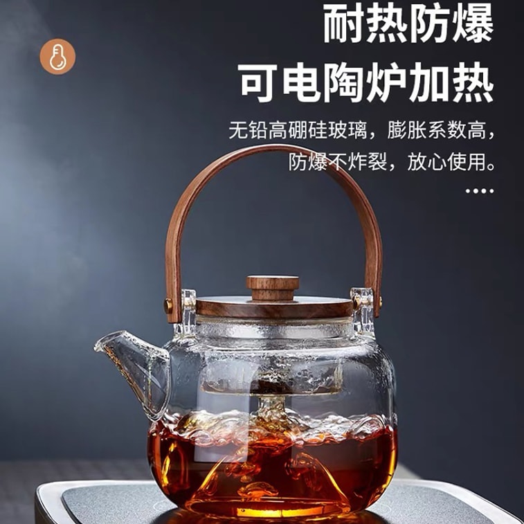 First-rate Health Pot【Includes Tea Brewing and Steaming Inner Container】 Flower Tea Pot Heat-Resistant Glass Wooden Lid 1/box | Yami
