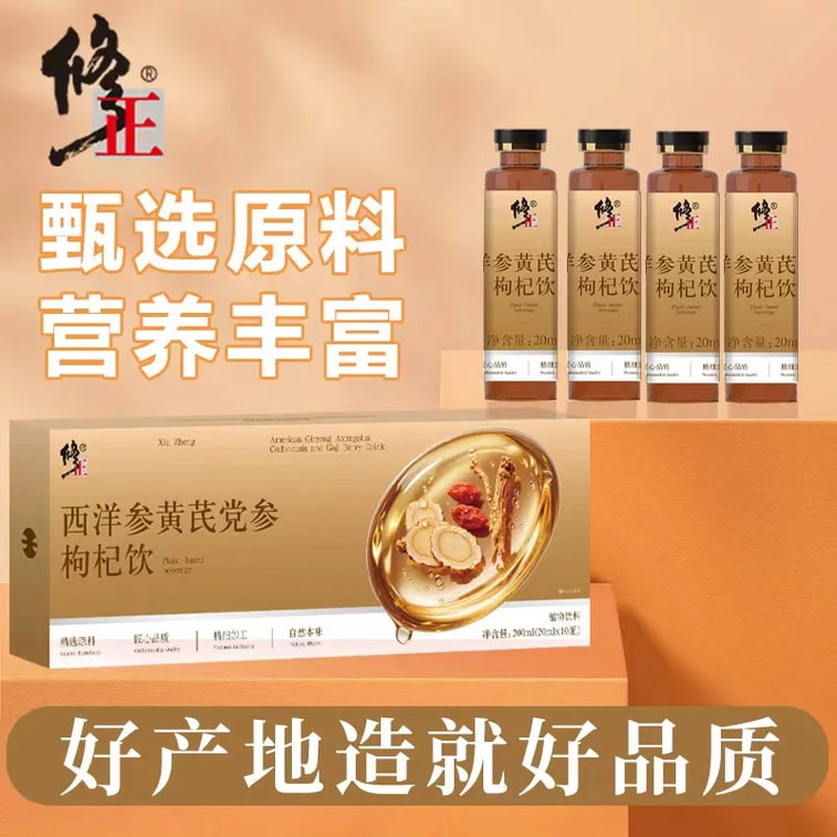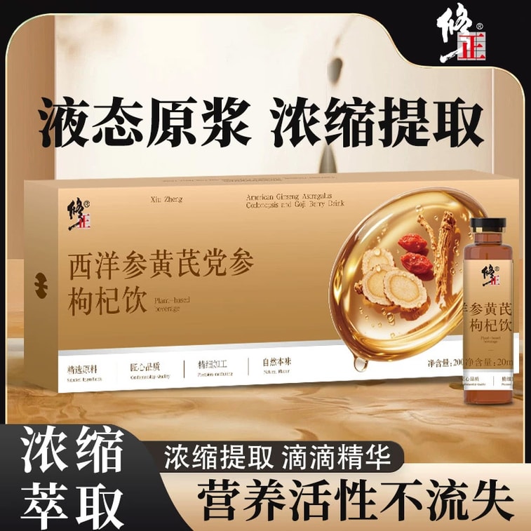 XIUZHENG Premium Herbal Qi & Blood Tonic Drink 200ml - 8 Essential Herbs: American Ginseng, Astragalus, Codonopsis, Goji, Lychee, Apple, Longan, Red Dates, Supports Energy & Immunity | Yami
