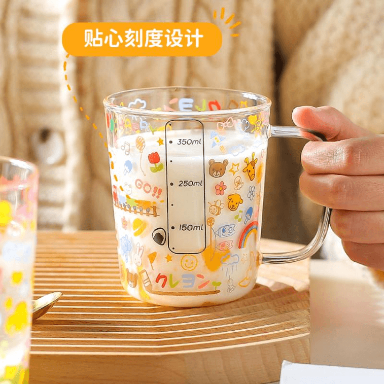 High Borosilicate Children's Graduated Glass Cup (black)400ml*1 Piece | Yami
