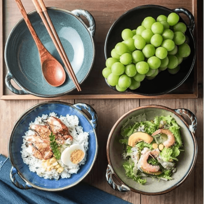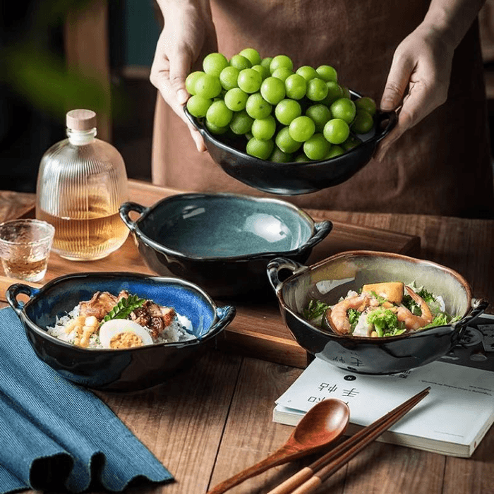 High Color Double Ear Stone Pot Noodles In Soup Bowl Ceramic Tableware Japanese Household Jade Green Bowl 22cm * 7cm