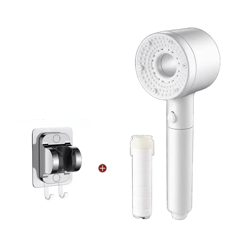 HSPM Home Use Ultra-Powerful Shower Head Bathroom Heater Turbo Large Water Outflow Five-Speed Minimalist White + Base | Yami