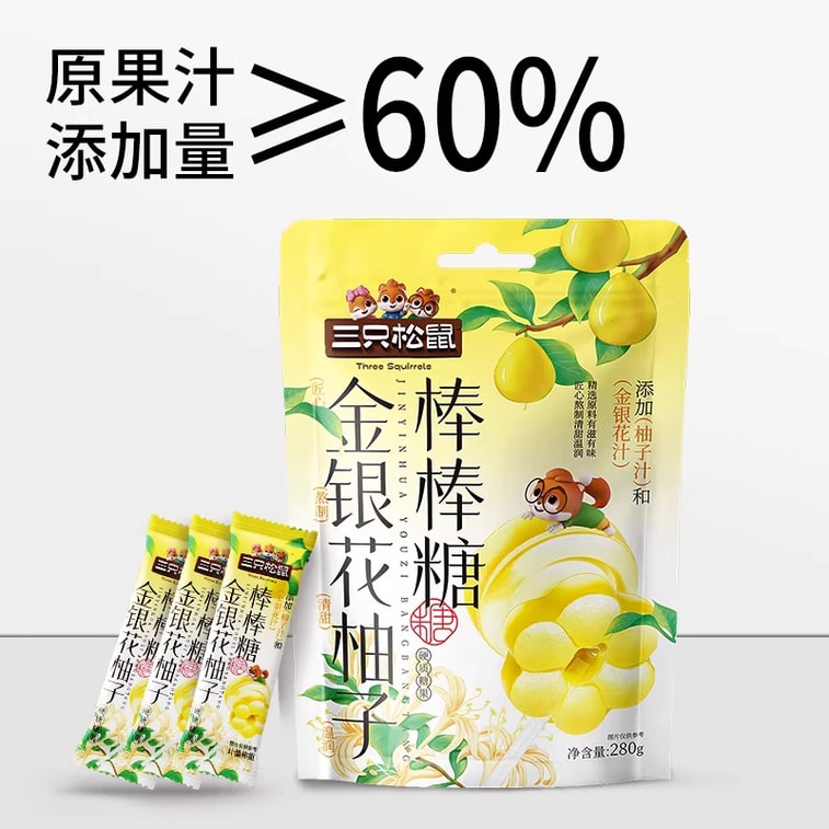 THREE SQUIRRELS Honeysuckle Pomelo Candy Pop Snack Food Refreshing Zero-Fat Juice 280g-1Pc | Yami