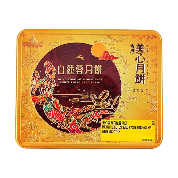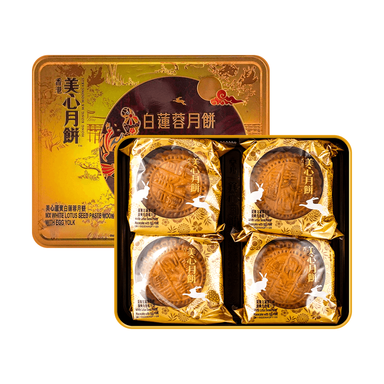 Hong Kong White Lotus Seed Paste Mooncake Gift Box - 1 Egg Yolk, 4 Pieces, 26oz