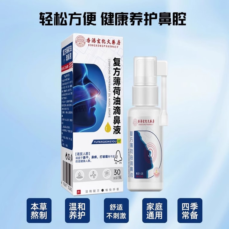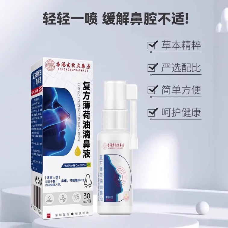 Hong Kong Xuanbei Pharmacy Compound Peppermint Oil Nasal Drops Antibacterial Spray 30ml Children's Nasal Congestion
