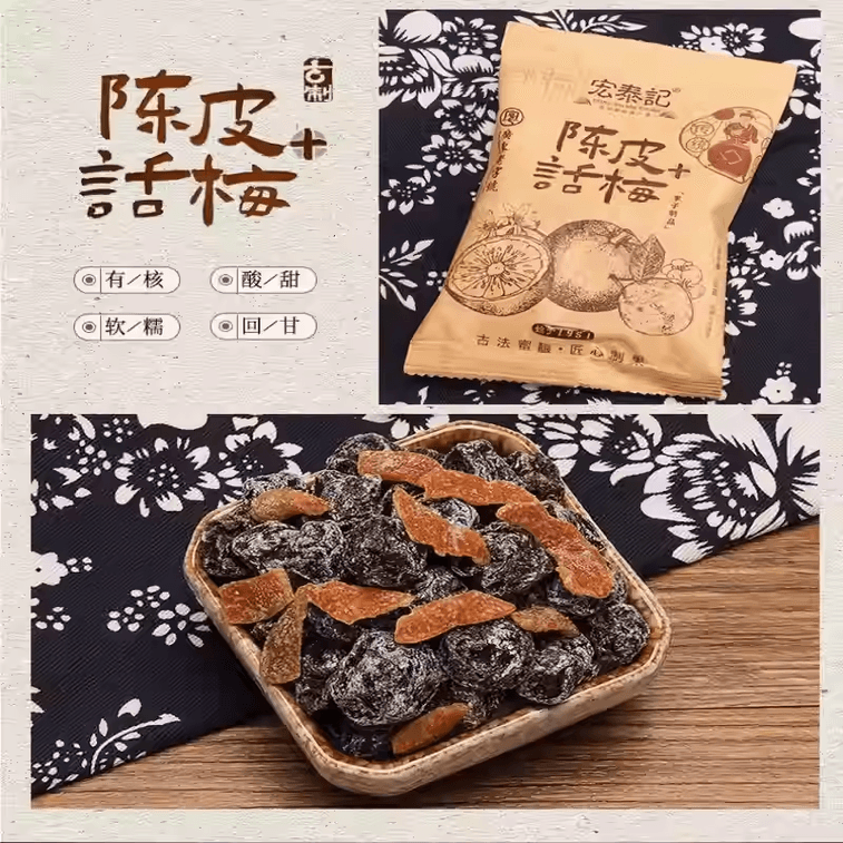 HTJ Hongtai Ji Traditional Tangerine Peel Candied Fruits - Tangerine Peel and Dried Bayberry Candy, Nostalgic 80s-90s Snack, 26g*5 Bags | Yami