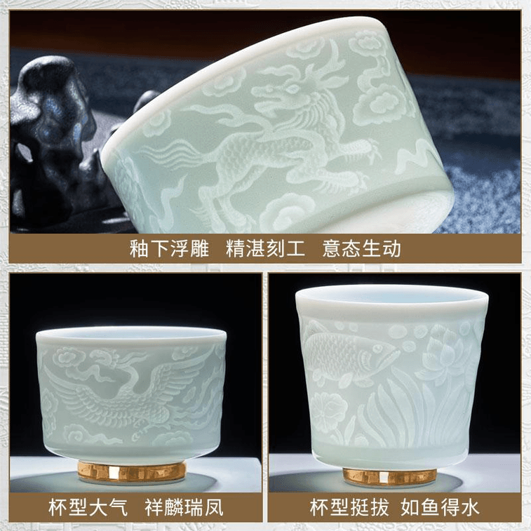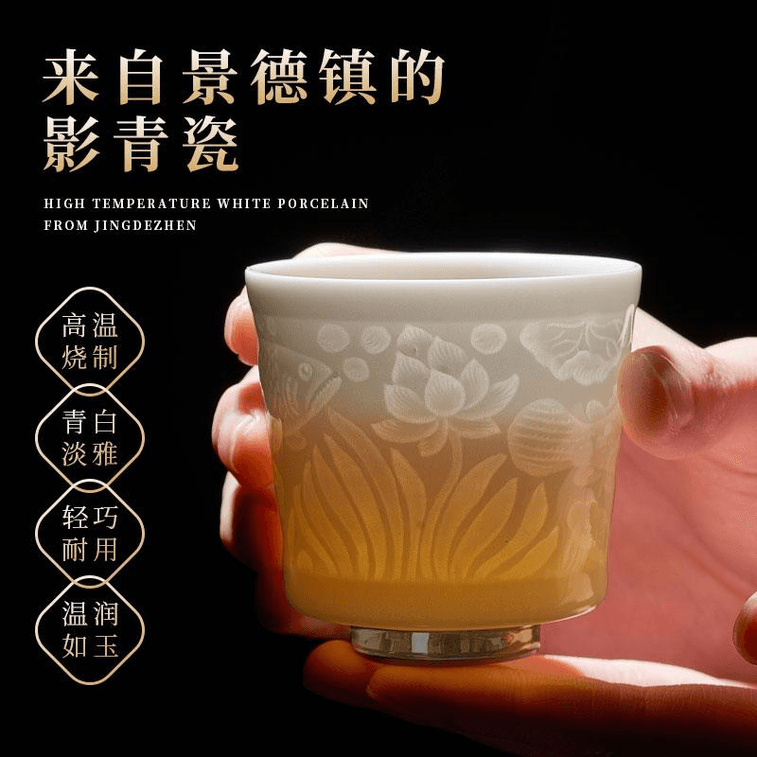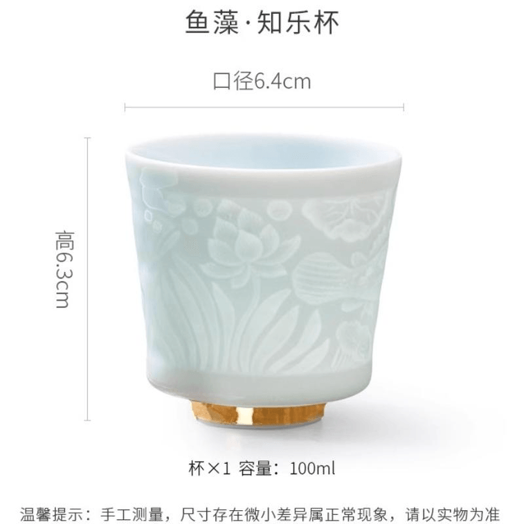 Huaguang Guci Jingdezhen Embossed Shadow Blue And White Porcelain Cup Fish And Algae·Joy Cup 100ML