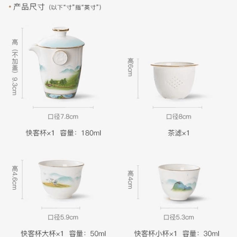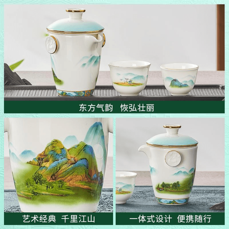 Huaguang Guocer Jingci Huaqingci Express Cup, One Pot And Two Cups, Thousand Miles Landscape, Five-piece Set, 180ml