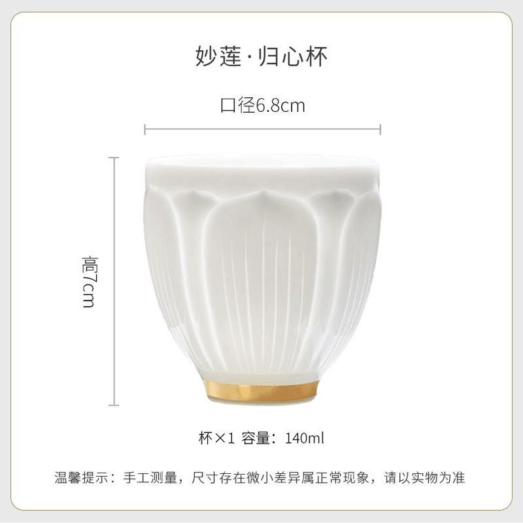 Huaguang National Porcelain Jingdezhen Handmade Embossed Kung Fu Tea Cup Miaolian·Guixin Cup 140ml