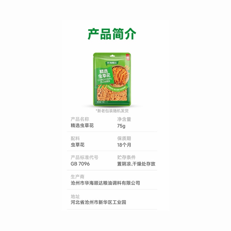 Huahai Shunda Cordyceps Flower Dried Goods Cordyceps Mushroom for Soup 75g * 1 Bag