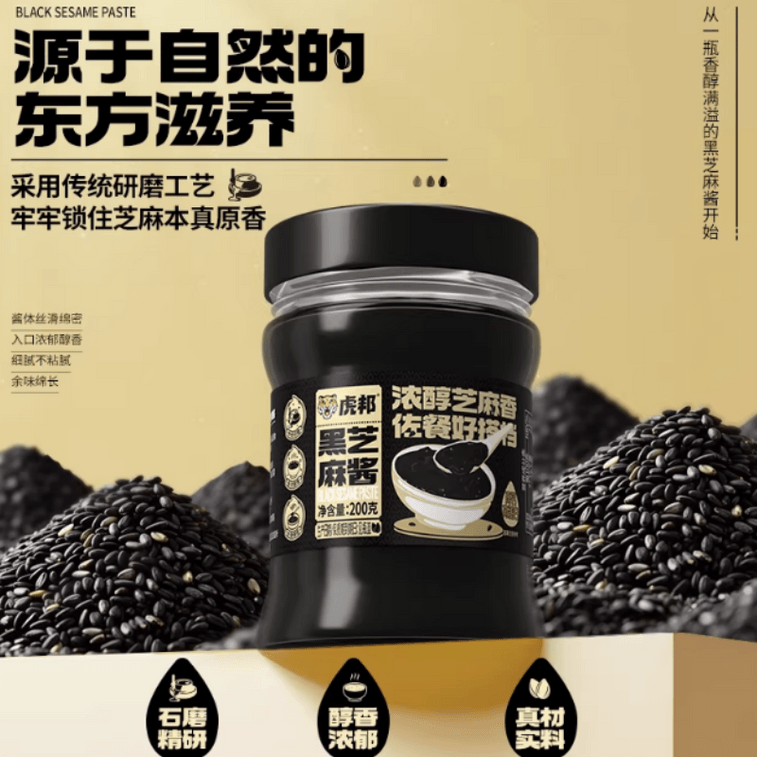 Hubang Black Sesame Paste for Spreading on Bread, Baking, and Baby Food 200g*1 Jar | Yami