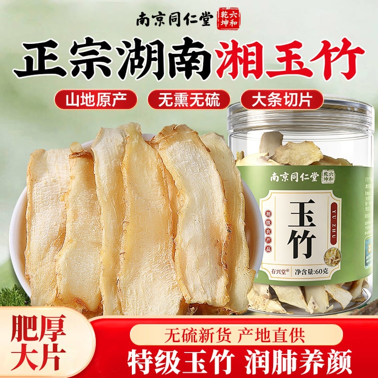 Nanjing Tongrentang Authentic Hunan Polygonatum Odoratum 60g - Naturally Sun-Dried, Sulfur-Free, Sweet Taste, Chewy, No Residue, Nourishing Tea for Yin, Dryness, Thirst & Skin, Pairs with Ophiopogon, Glehnia, Lily | Yami
