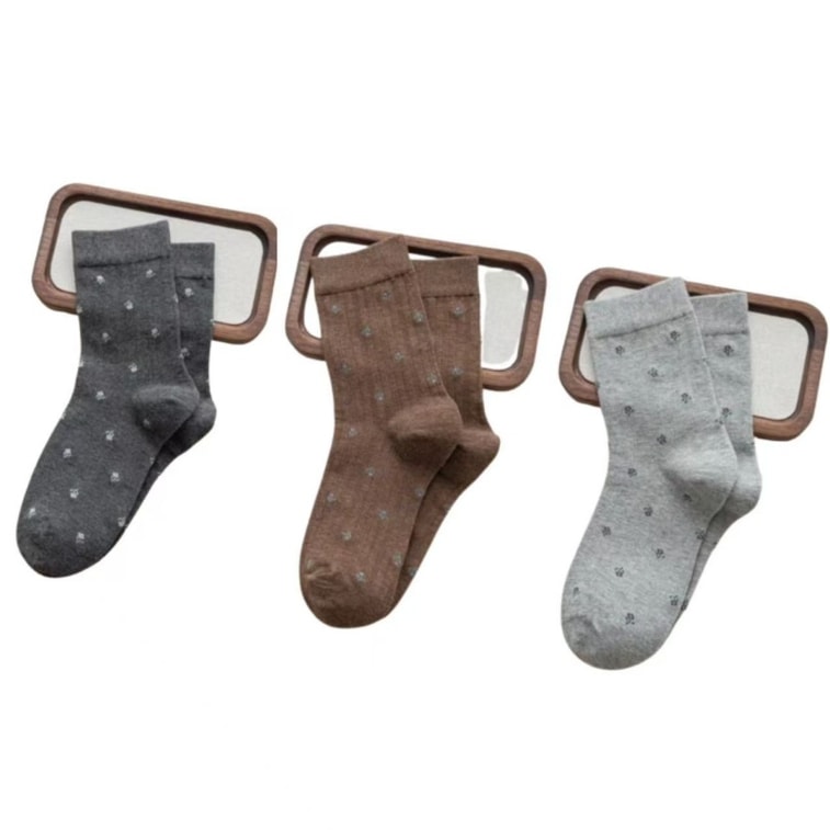 QINTAITAI Autumn/Winter Bone-Free Retro Floral Mid-Calf Socks One Size Fits All Light Gray Brown Dark Gray 3-Pair Pack | Yami
