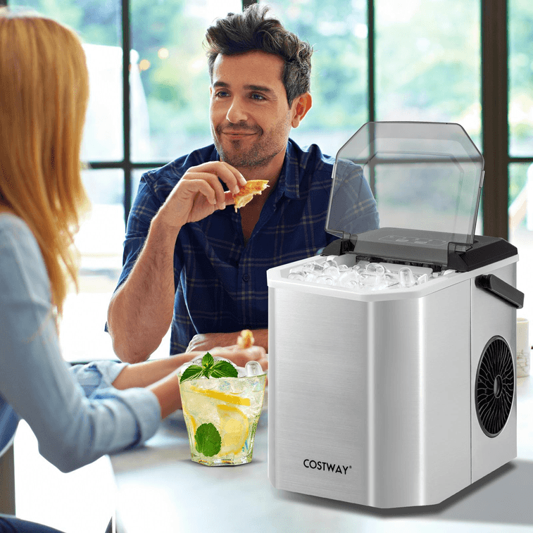 14 Inch Ice Maker Countertop with Self-Cleaning for Home Kitchen Office Party-Silver | Yami