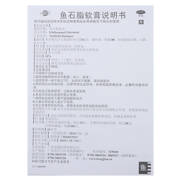 Ichthyite grease ointment boils swelling detumescence disinfection and bacteriostasis 20g* 1pcs
