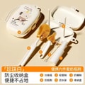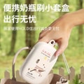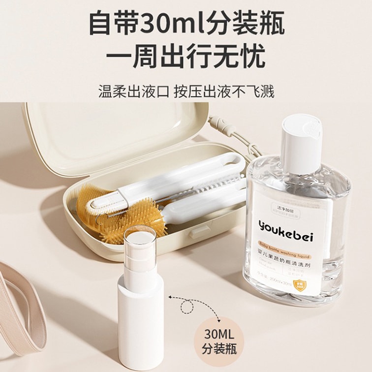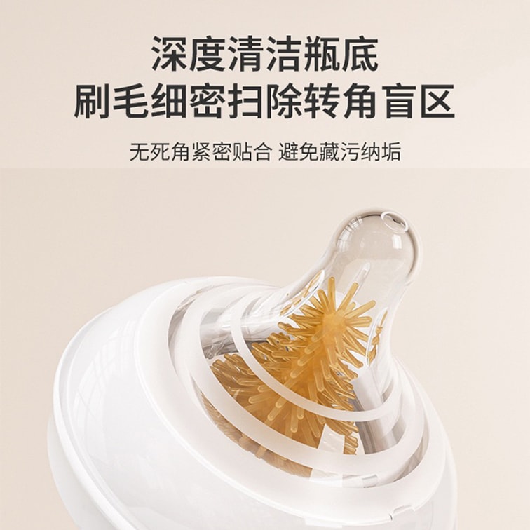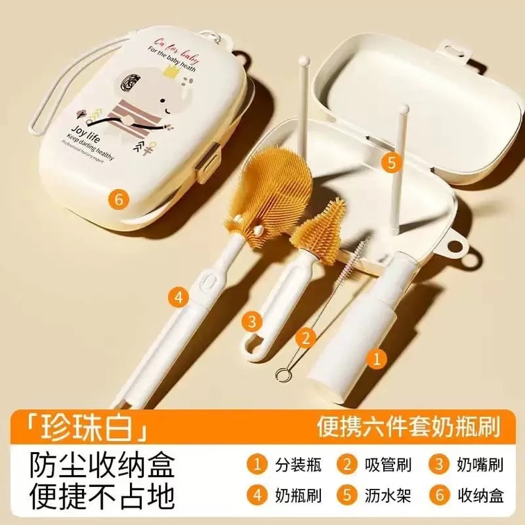 Infant Bottle Brush Set (6 Pcs) Portable Silicone Nipple Straw Cleaning Brush Built-in Waterproof Travel Kit Light Beige