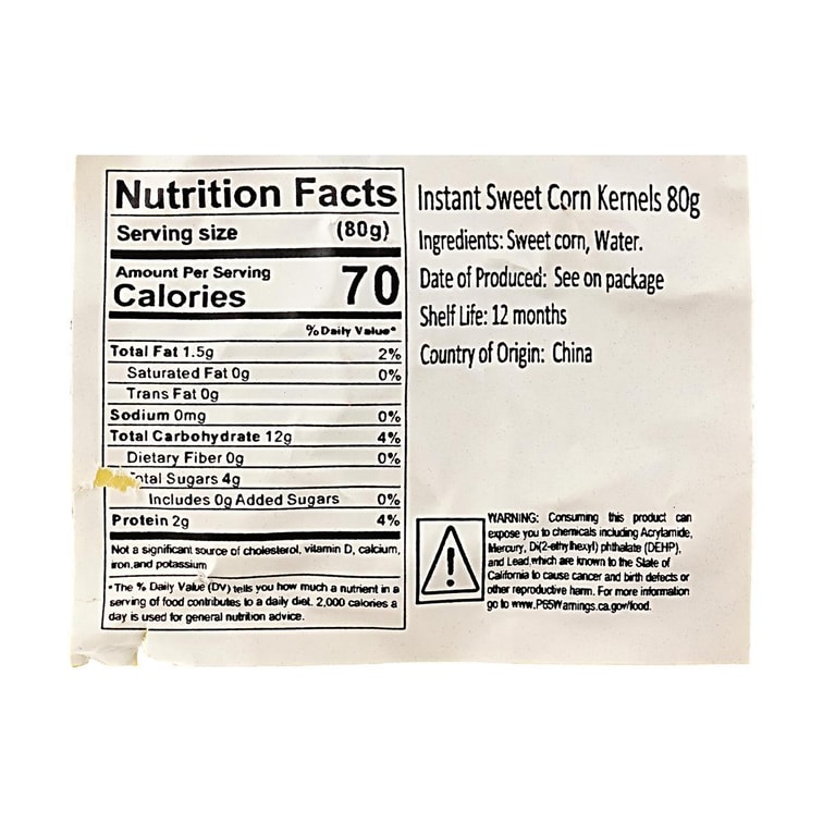 Instant Sweet Corn Kernels, 2.82 oz 【Low-Fat, Low-Calorie】【Light Meal Replacement】【Ready-to-Eat, No Cooking】【 Yami Exclu