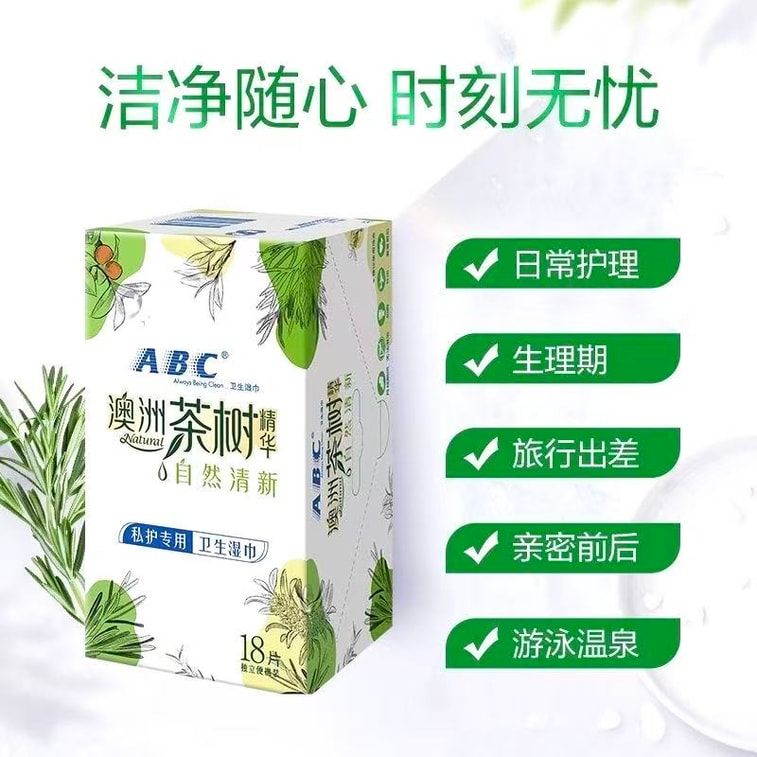 Intimate Hygiene Wet Wipes Tea Tree Essence Mildly Acidic Gentle Female Cleansing Wipes Private Care Wet 18Pcs/Pack