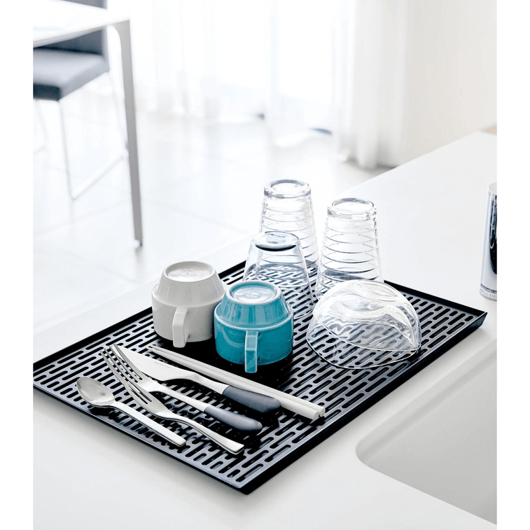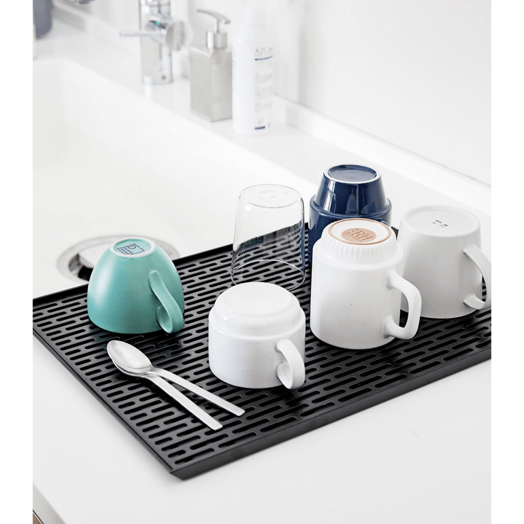 Wet countertops no more! Looking for a little extra drying space that won’t crowd your kitchen? Break out this draining mat and set it alongside your sink when it comes time to add some extra drying room for dishes and utensils. When finished, simply remove the top lid and pour excess water back into the sink for easy cleaning. Thanks to its slim design, you can easily tuck this draining mat behind your sink or in a cupboard when not in use.