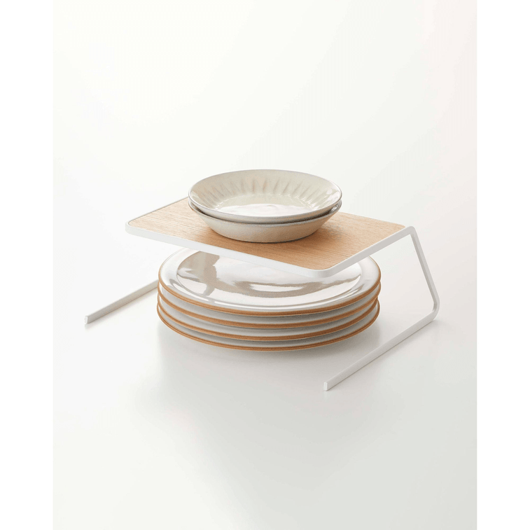 Keep a low profile! Use this simple stand to separate dishes and increase your vertical stacking space. No more struggling to lift up stacks of smaller plates to get to the larger ones on the bottom. If you haven’t already broken a saucer that way, lucky you! Go for this smaller riser for smaller assortments, and the