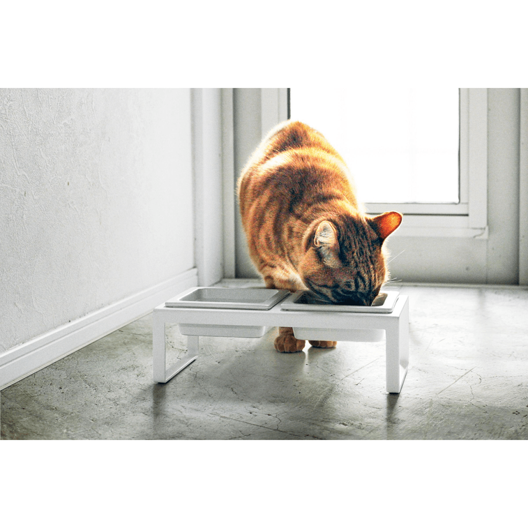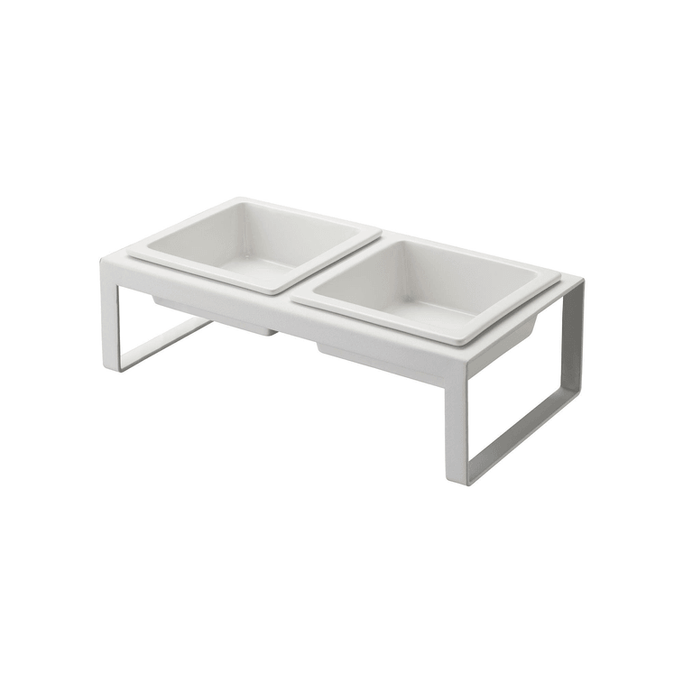 Pet Food Bowl - Tall - Steel + Ceramic White 1 piece