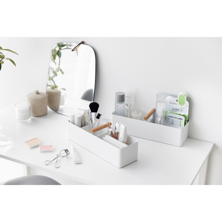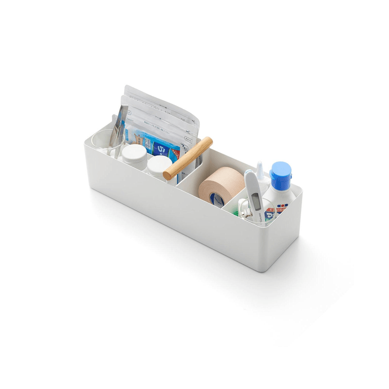 The caddy-lac of desk organizers. Create the office setup of your dreams starting with the ultimate storage box. Adjust the magnetic inner dividers for a custom storage solution that gives your supplies the prominence they deserve. Use the storage box to create a custom-fit first aid kit or to store medicine and supplements. The natural wood handle makes it perfect for picking up items on the go or for a craft carryall, which can be easily tucked away when done.