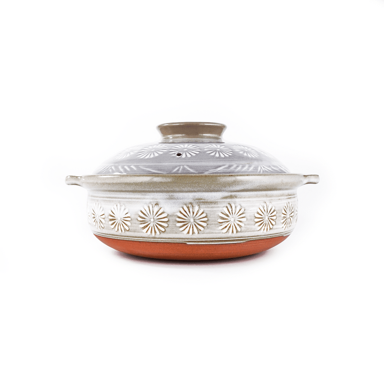 Ginpo Mishima Japanese Clay Pot Banko Donabe Chrysanthemum 105oz 3L