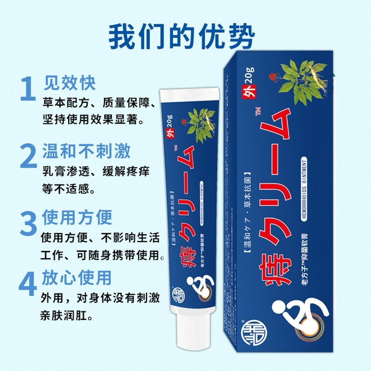 YAN HE Japanese Hemorrhoid Ointment For Topical Application Hemorrhoid Antibacterial Ointment 20g/ box | Yami