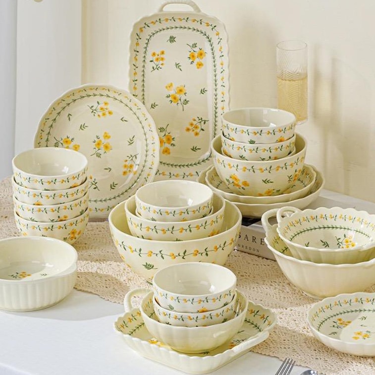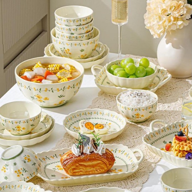Japanese-Style Pastoral Tableware, 7.5-Inch Striped Double-Ear Bowl,19.5 * 16 * 5.5CM