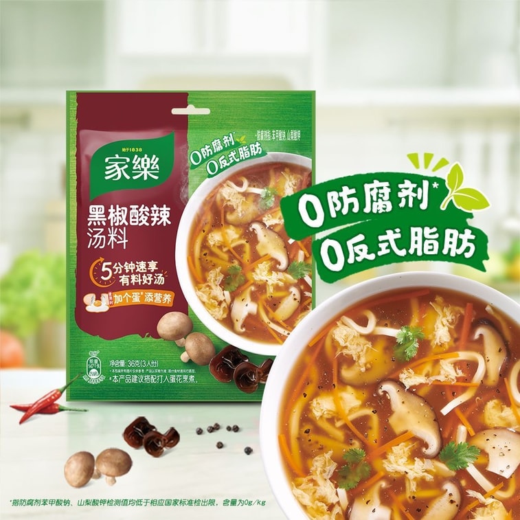 Jiale Black Pepper Hot and Sour Soup 36g*3 packs 108g Spicy Pepper Soup Seasoning Pack Flavor Enhancer Instant Breakfast Quick-Cook Soup Seasoning
