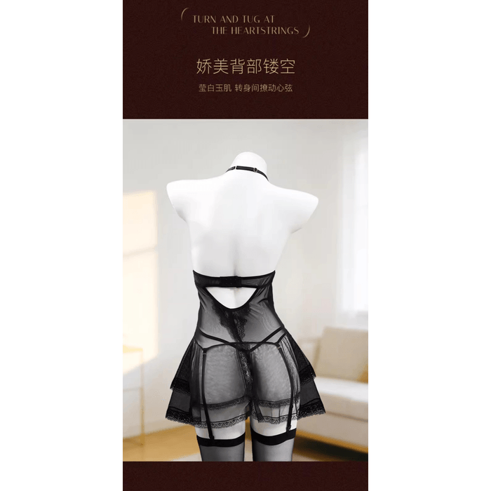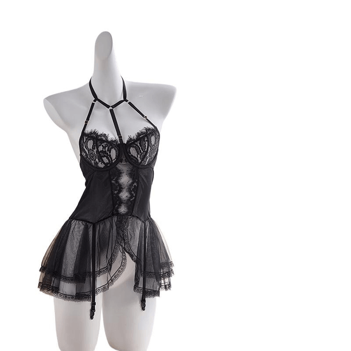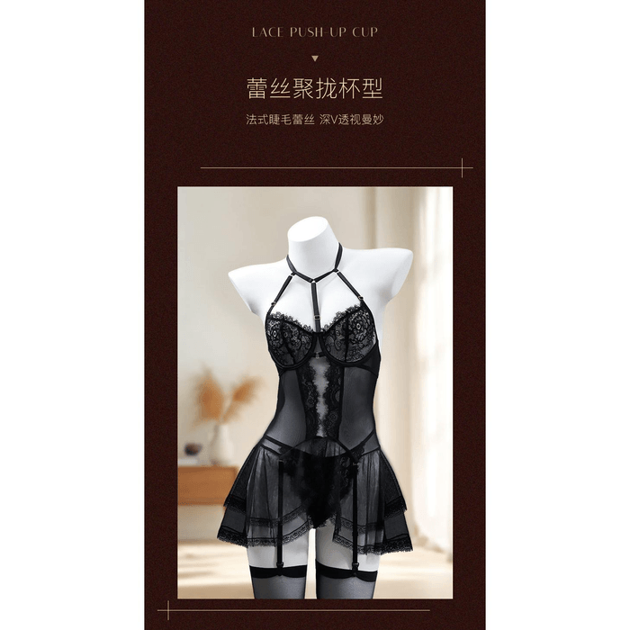 Jieshibang lace gathering sexy lingerie sexy sleeping dress black size m * 1 piece