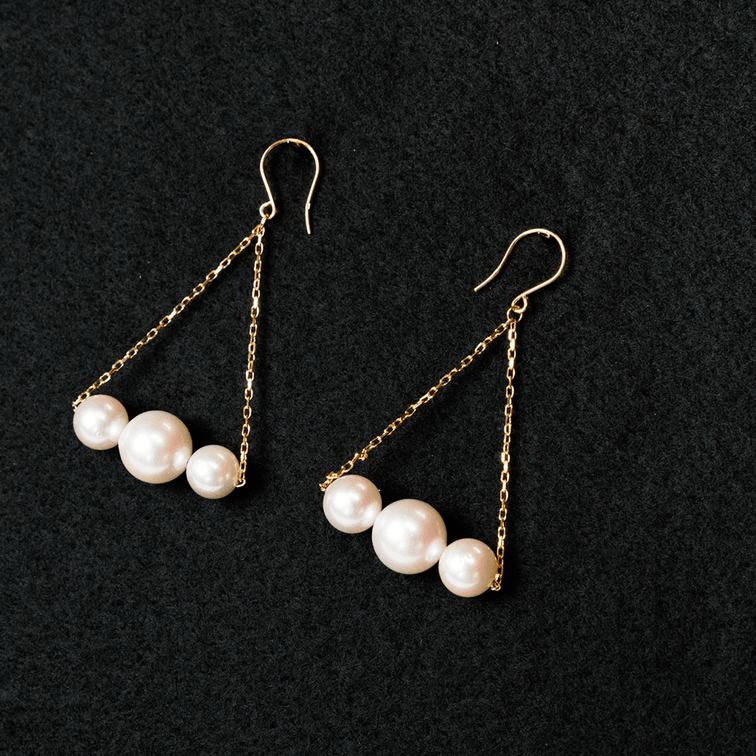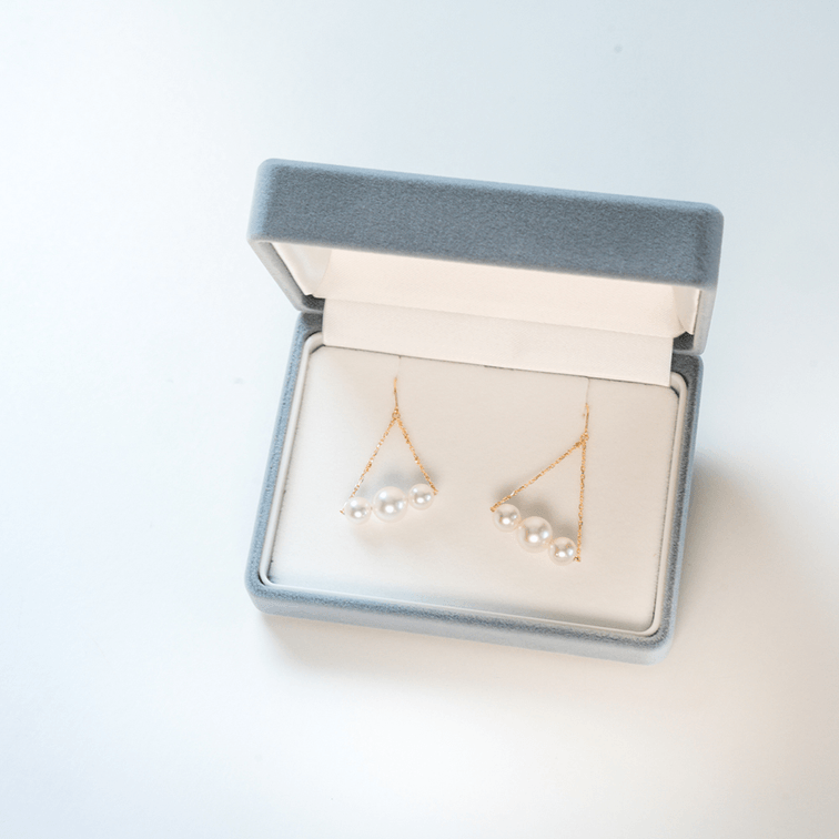 Uwakai Pearl AKOYA three bead row bead balance earrings 1 pair6-6.5mm×2/8-8.55mmx×1