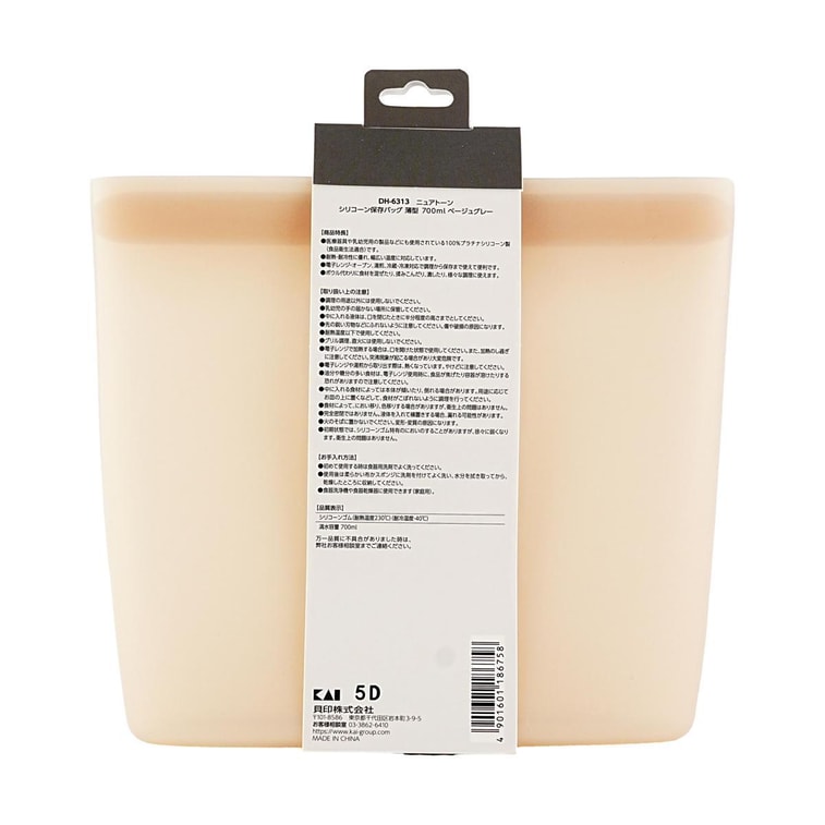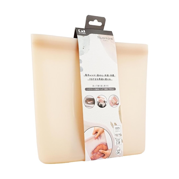 KAI Corporation Slim Silicone Food Storage Bag 700 ml – Beige Gray