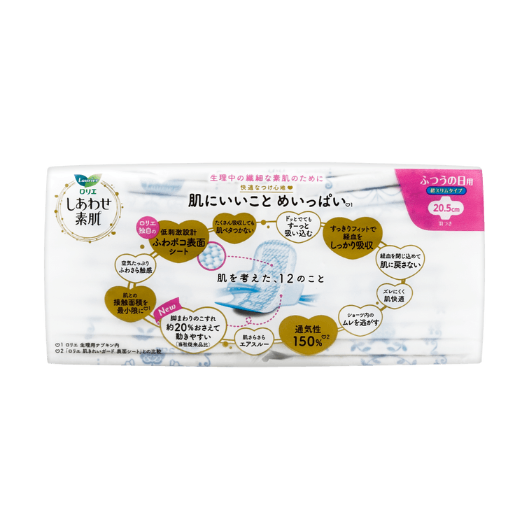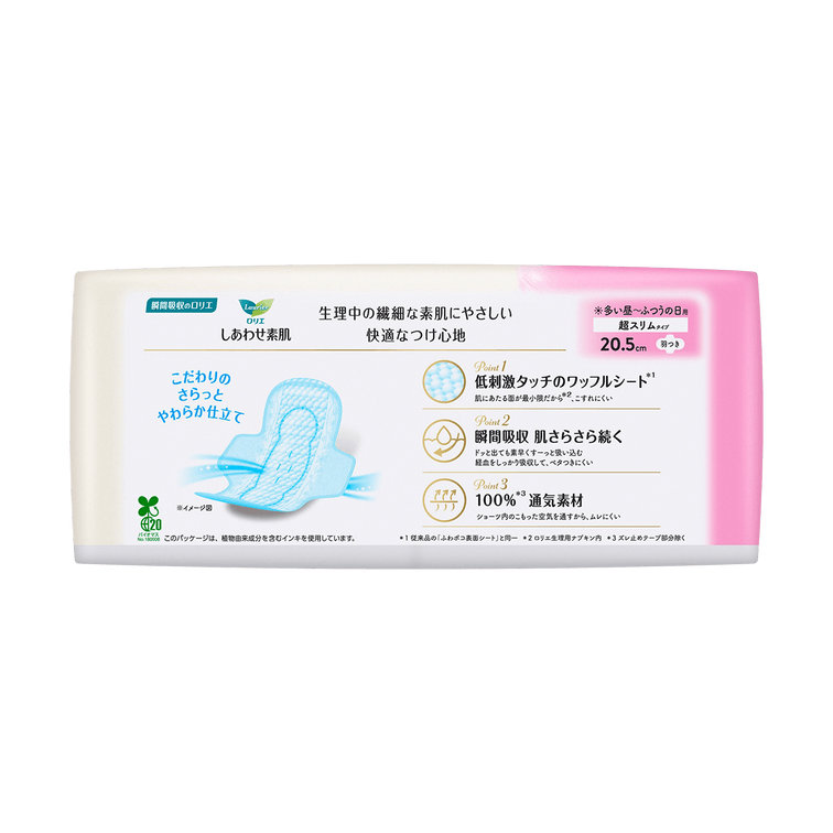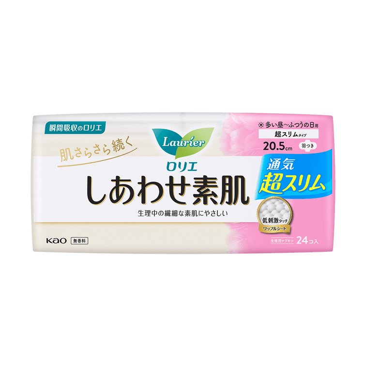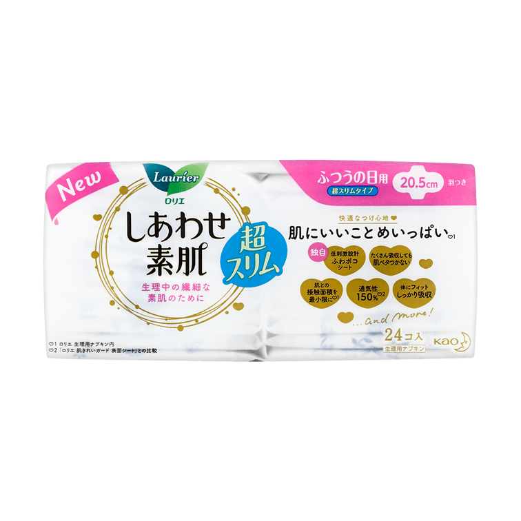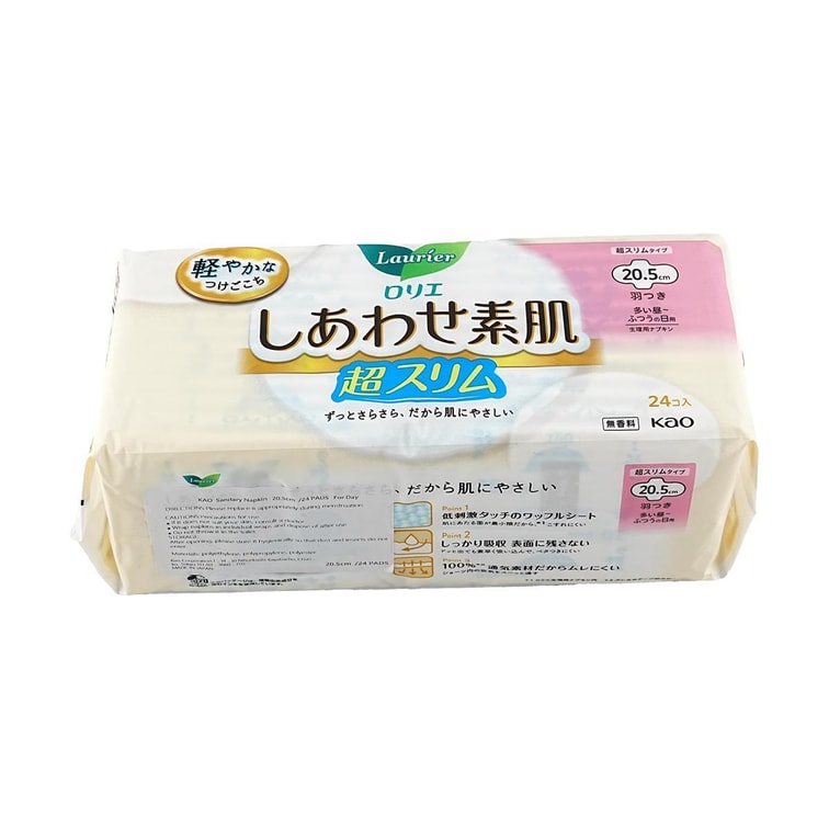 Ultra Thin Unscented Feminine Period Pads for Sensitive Skin with Wings, Size 2 / 205mm, 24ct