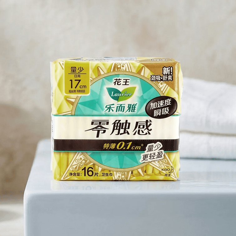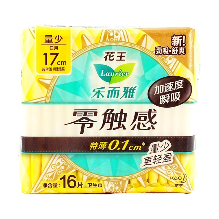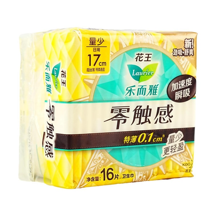 KAO Laurier Zero Touch Series - Ultra-Thin Mini Sanitary Pads, 17cm, No Wings, 16 Count, Antibacterial & Light Flow | Yami