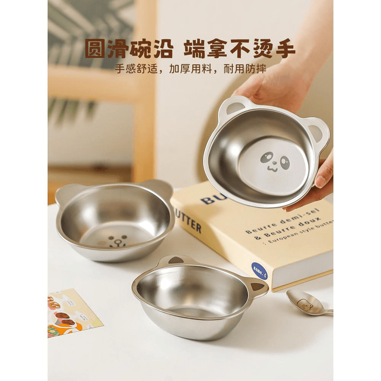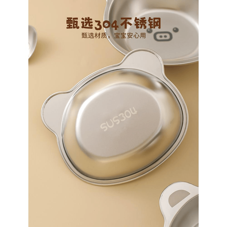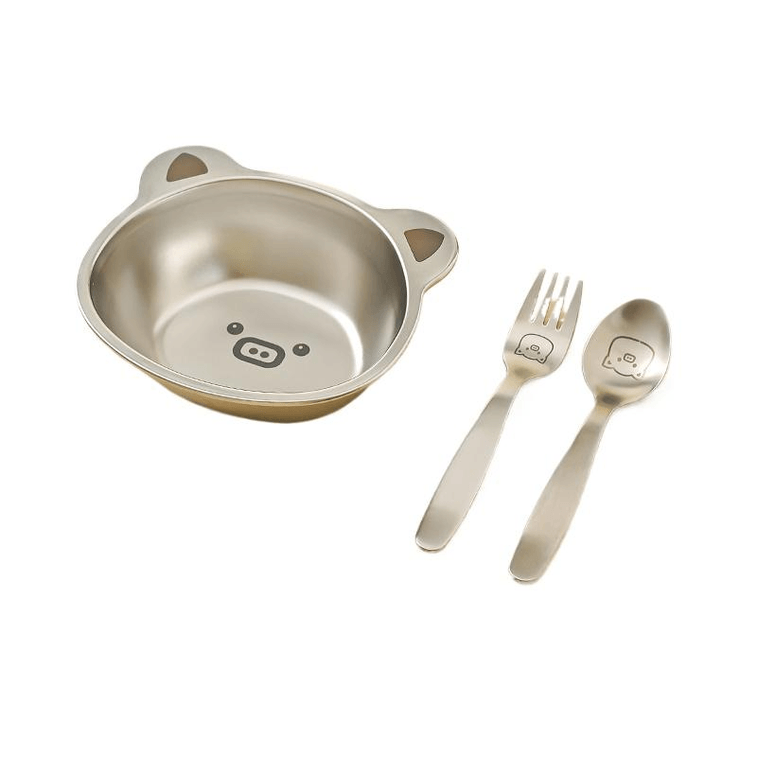 304 Stainless Steel Bowl Food Grade Children's Fork + Spoon + Bowl *1 Set | Yami