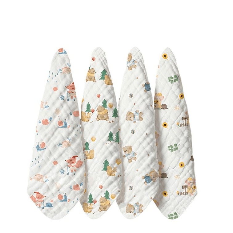 Kechao Baby Drool Towel For Newborns, Pure Cotton,non Shedding, With Four Layers Of 25 * 25cm Jungle Fun Game * 4 Pieces