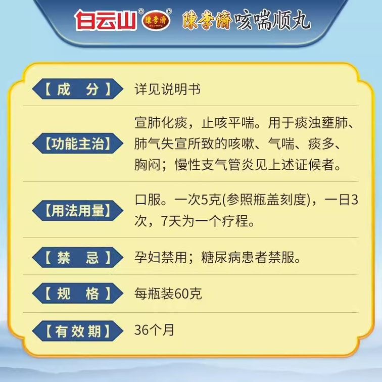 | Treatment | Treatment of chronic bronchitis cough chest stuffy sputum asthma |