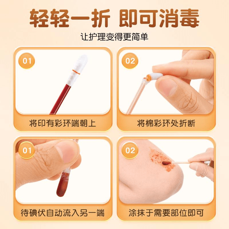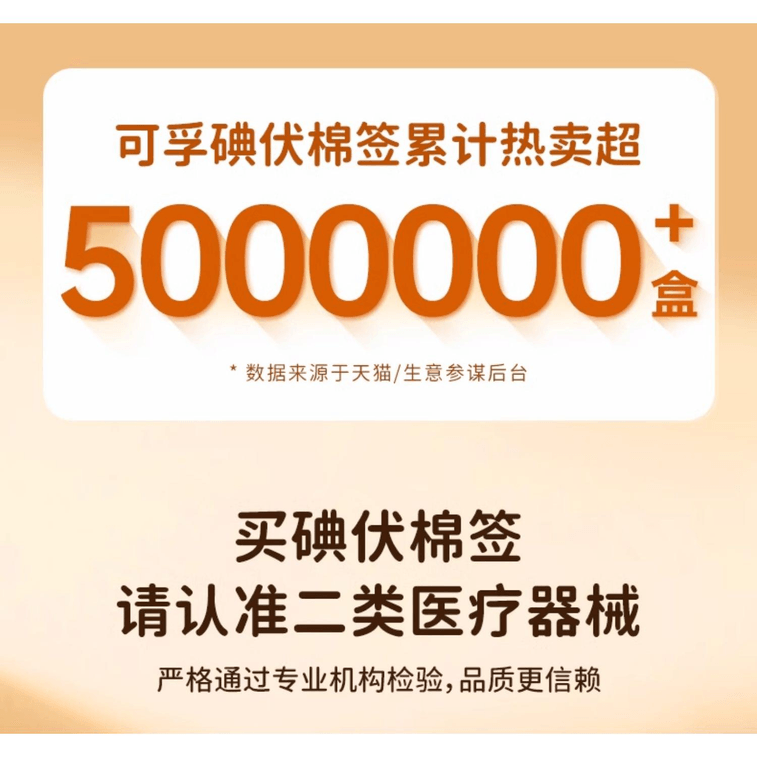 Kefu Iodine Swabs, Cotton Swabs, Disposable Iodine Solution,Disinfectant Iodine Swabs, 50 Sticks * 1 Box | Yami