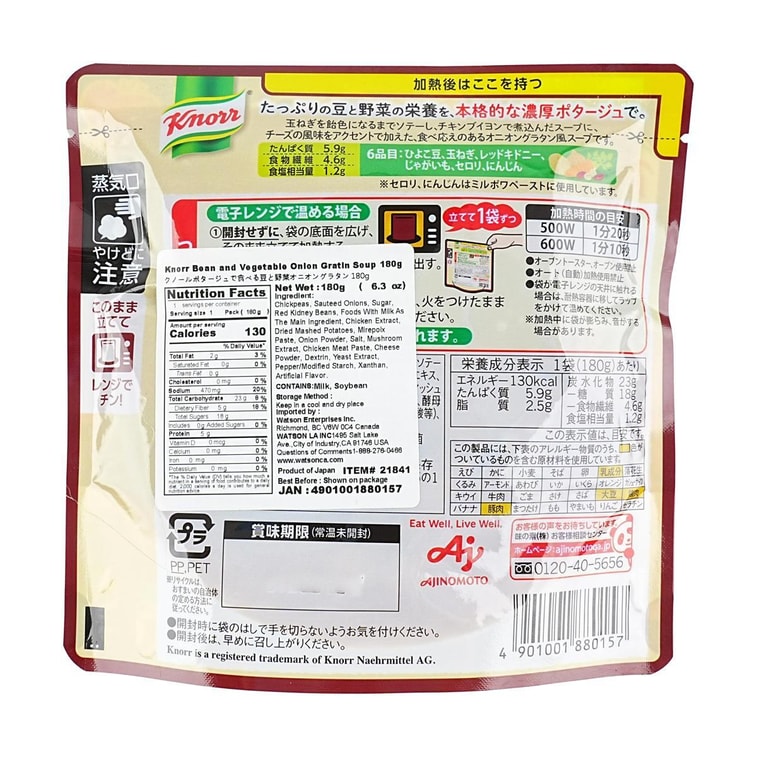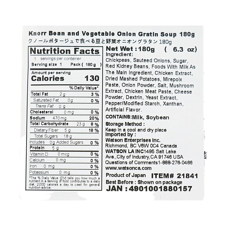 Knorr Potage De Taberu Mame To Yasai Onion Gratin - Roasted Onion Chickpea Bean and Vegetable Soup , 6.3 oz【130Kcal】