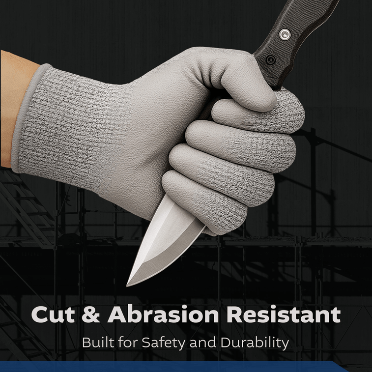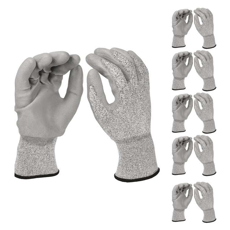 Black Melange HPPE Blended Glove - Grey PU Palm Coated (4 Sizes), 5ea L