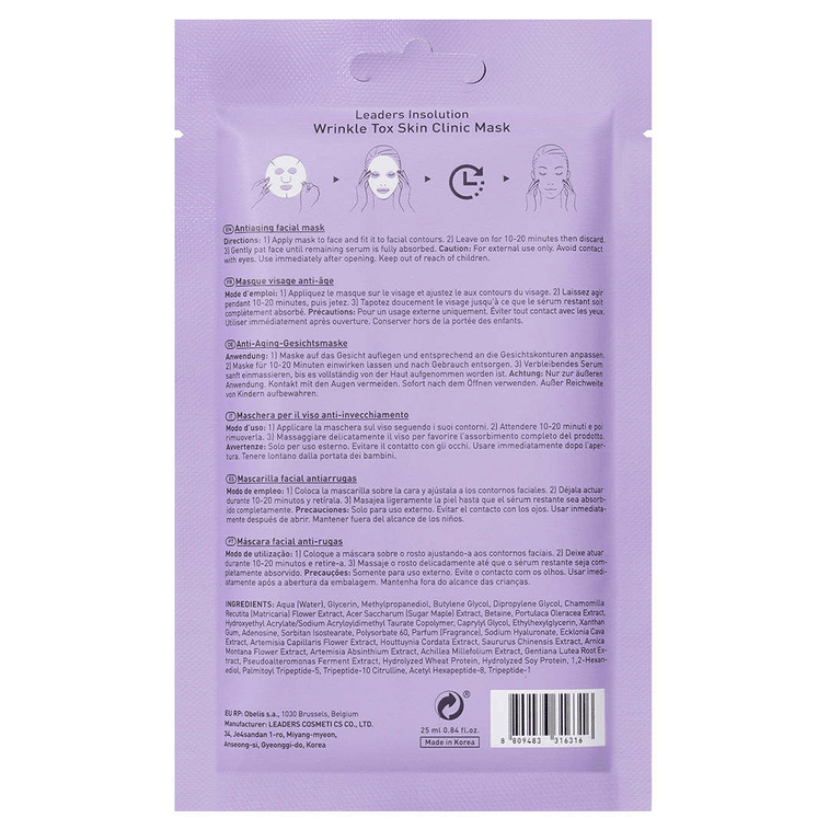 Korea Leaders Wrinkle Tox Skin Clinic Mask 10 Mask Pack