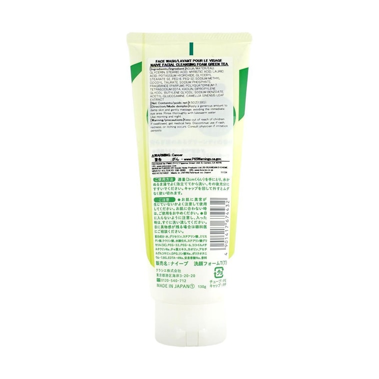 KRACIE NAIVE Facial Cleansing Foam is a skin care series that is made with 100% plant derived cleansing agent. With the special formula, it create creamy foam that gently washed and moisturize skin. #Green Tea