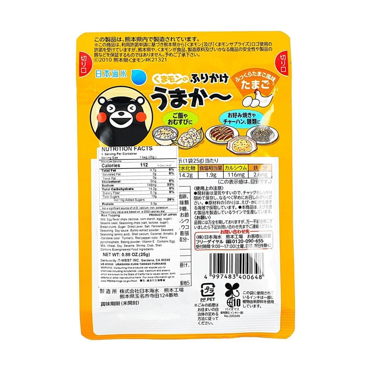 Kumamon Tamago Furikake - Egg Flavor Rice Seasoning, 0.88 oz